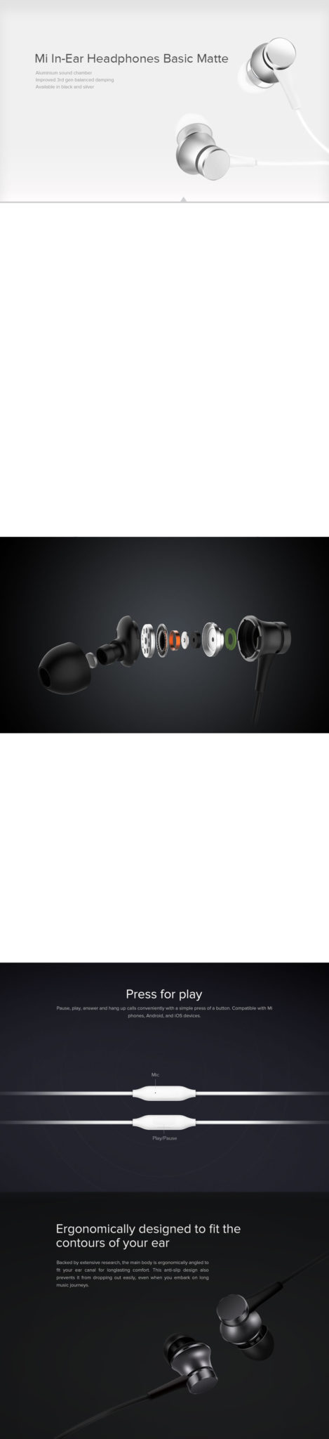 – Mạch loa của Xiaomi In-ear Headphones Basic Matte được thiết kế “xoắn ốc vô cực” cho chất âm sâu và tối ưu hóa dải Bass